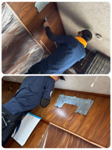 鍋島さんが室内機の取付をメインに作業を行い、